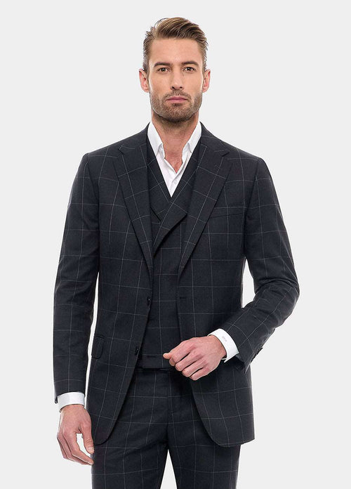 Blazer Cuadro Ventana Gris Oxford Y Gris Plata