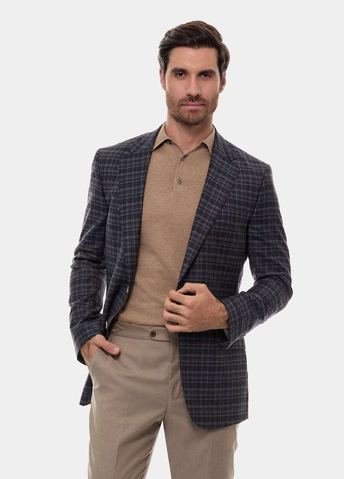 Blazer Cuadro Ventana Gris Plata Y Vino