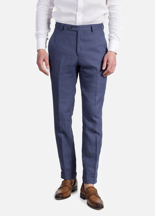 Pantalón Fil A Fil Azul Indigo Lana Super 110'S