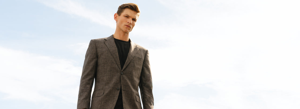Saco Principe De Gales Arena Con Azul